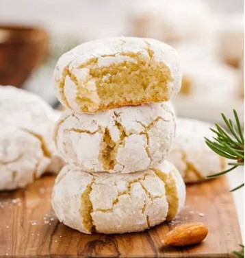 Saupoudrez de sucre glace pour obtenir le craquelé typique des Amaretti.